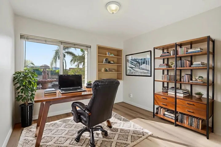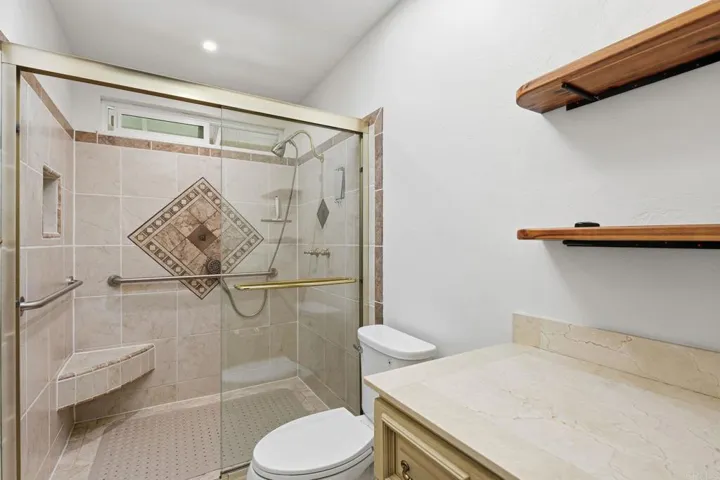 Welcome to 17765 Corte Erizo, in the great 55+ Oaks North Community of Rancho Bernardo! This beautiful move in ready 3-bedroom, 2-bath single-story home offering 2,001 sq ft of inviting living space is ready for your personal touches. Fresh paint and brand-new carpet throughout create a clean, modern feel from the moment you step inside. The bright, open kitchen is truly the heart of the home, featuring a center island, decorative hood, granite countertops, electric stove, and custom lighting—perfect for cooking, entertaining, or gathering with loved ones. Relax in the spacious living and family rooms, enhanced by a cozy double-sided gas fireplace, or host memorable meals in the elegant formal dining room. The large master bedroom includes a beautifully designed custom built-in closet, offering both style and functionality. The home is equipped with solar power for enhanced energy efficiency. Step outside to your private backyard retreat, complete with artificial turf, a comfortable patio area, thoughtfully landscaped back slope, and your very own jacuzzi—ideal for unwinding after a long day. Perfectly situated near the 15 freeway, Oaks North Golf Course, and a variety of shopping and entertainment options, this home offers convenience and lifestyle all in one. This is a home that blends comfort, style, and location in one perfect package. Don’t miss the chance to make it yours!