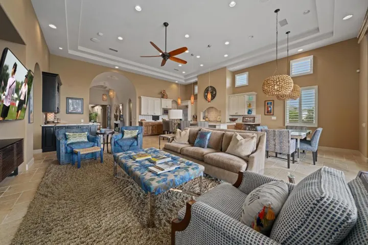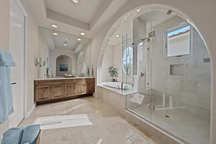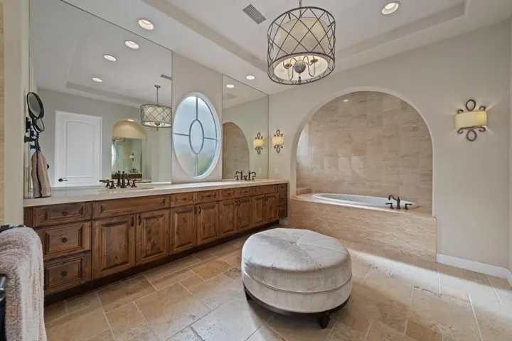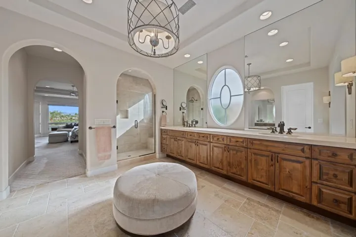 Located on a private end lot, this exquisite residence boasts sweeping views down the 3rd fairway of the renowned Rees Jones-designed golf course in the esteemed Andalusia Country Club. Offered fully furnished, this home is a showcase of elegance and comfort, perfectly blending luxurious details with modern functionality. Inside, stunning travertine flooring flows throughout the home, complementing the expansive great room that features a custom bar area. The open kitchen is a chef’s dream, complete with a large island and a butler’s pantry equipped with an additional dishwasher and sink. The adjoining formal dining room creates the perfect setting for hosting intimate gatherings. This thoughtfully designed floor plan includes two primary suites, each featuring spa-like baths for ultimate relaxation. The main primary suite is enhanced by a customized office, fireplace, and an expansive walk-in closet. An additional media room provides a dedicated space for movie nights. The detached casita offers versatility with a living room, fireplace, kitchenette, and a separate bedroom with bath. The layout allows the space to be used as two bedrooms with separate entrances, offering privacy and comfort. The backyard is an entertainer’s paradise, featuring a sparkling pool, tranquil water features, a relaxing spa, a built-in BBQ area,and cozy firepit–all surrounded by the serene beauty of the golf course. Come live the life you’ve always imagined!