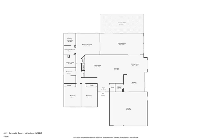 Welcome to 64991 Barnes Ct, an immaculate single-family home nestled in the beautiful golf course community of Mission Lakes Country Club. This expansive 2404 square foot residence is situated at the end of a quiet cul-de-sac on a large 9583 square foot, pie-shaped lot. The open floor plan includes a great room with wet bar, perfect for entertaining. The large permitted room addition is perfect as a family room, game room, or as a relaxing retreat. Step outside to your private back yard that includes a large covered patio with views of a rock waterfall feature, impeccably maintained landscaping, and mature fruit trees.