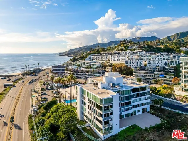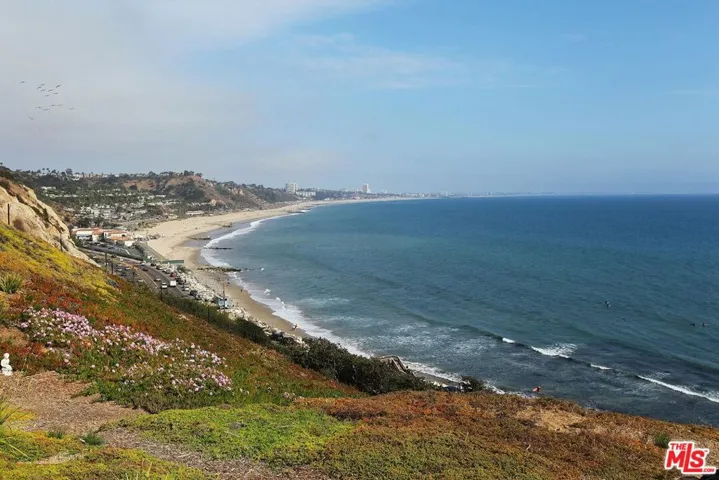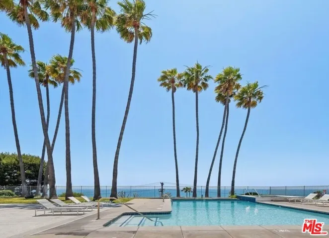 VIEWS, VIEWS, VIEWS! You don’t need to go on vacation if you live here! Unobstructed, sweeping panoramic OCEAN VIEWS from Pacific Palisades’ most prestigious full-service building–Edgewater Towers. Situated on a resort-like 9-acre bluff above Pacific Palisades/Sunset Beach, this single-level 2 bedroom, 2 bath, 1,379 sq ft corner unit has floor to ceiling windows and sliding doors that open to a spacious balcony capturing southwest views of Santa Monica Pier, the Queen’s Necklace, and Catalina Island. This light and bright unit has an open floor plan with hardwood floors and fireplace. The cook’s kitchen has modern appliances, gas range, two ovens, lots of storage and opens to oversized breakfast bar and a formal platform dining area. The primary suite features a large walk-in closet and breathtaking head-on ocean views. Edgewater Towers is a 24-hour guard-gated complex with two resort-style swimming pools, two spas, a fitness center, tennis and basketball courts, gazebo/barbeque/picnic area, dog park, and hiking trails on nine acres of beautifully landscaped grounds. HOA includes water, electricity, gas, and trash. Updated central air and heating. Two side-by-side garage parking spots and two storage units. The ultimate in Southern California luxury lifestyle with the beach, Gladstones, Vons, Equinox, and approved renovation plans for future nearby restaurants and stores. One block away is Lake Shrine and Palisades Drive with restaurants and shops. Moments away from this premiere coastal location is the Getty Villa and fine dining and shopping at Malibu Country Mart, Palisades Village, and Montana Avenue. LIFE’S A BEACH at this luxury oceanfront condo where you can enjoy daily unobstructed ocean views, waves crashing on the beach, and stunning sunrises and sunsets.