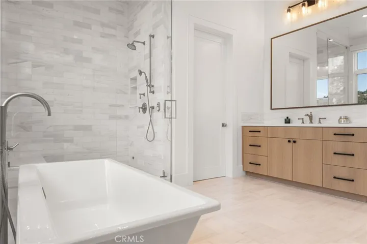 This home is fully equipped with smart-home technology controlling lighting, climate, music, and security. Automated blackout shades, a full-home water filtration system, and energy-efficient features, including Tesla Powerwalls and tankless water heaters, add to the comfort and convenience.