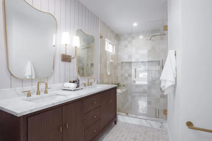 This luxurious, fully remodeled home delivers impeccable design, modern comforts, and cottage character throughout. Entering through an arched wood door, warm natural light fills the living room, where vaulted ceilings with striking exposed beams and a handsome fireplace create an unforgettable first impression, evoking the charm of a Tudor-inspired storybook home. The flow continues into a bright dining area that opens to a beautifully reimagined kitchen featuring custom cabinetry, sleek surfaces, wood-accented walls, and gleaming appliances, perfect for both everyday cooking and elevated entertaining. A peaceful primary suite and additional well-appointed bedrooms offer flexibility for guests, work, or creative spaces. Spa-inspired bathrooms showcase refined finishes, while a dedicated office nook and a spacious laundry room add everyday convenience. An inviting deck is ideal for morning coffee or evening unwinding. Beyond it stretches a generous landscaped backyard shaded by mature trees, an effortless extension of the living space. A large detached garage offers storage, parking, or potential creative use. Set in a treasured neighborhood celebrated for its wide streets, architectural charm, and strong community pride, the home enjoys proximity to beloved local cafés, parks, walking routes, and quick access to Culver City, DTLA, LAX, and the Westside. Come experience its charm in person!