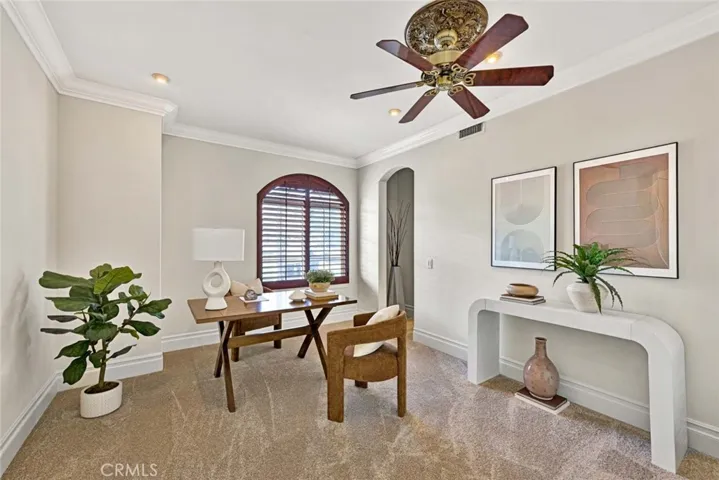 Welcome to this stunning and spacious home, where a grand two-story foyer and dramatic semi-circular staircase make a beautiful first impression. With 5 bedrooms and 3.5 baths, this residence offers incredible flexibility—including a main-level office that can serve as the fifth bedroom with huge walk-in closet. Enjoy elegant entertaining in the formal living room with fireplace and the separate dining room for your holiday dinners, or keep things casual in the oversized family room, also featuring a cozy fireplace. The huge kitchen is designed for both cooking and gathering, complete with a breakfast bar/island & a casual dining area just steps away from the family room with views of the peaceful Zen like backyard. There is also a cute powder room and access to the garage with built-in’s. Second level has a substantial landing to display art and family pictures, the spacious primary suite with double doors offers a peaceful escape with two large walk-in closets, dual vanities, vast walk-in shower and a generous soaking tub. One of the secondary en-suite bedrooms includes an adorable bonus area behind French doors—perfect as a study nook, gaming/reading room, or vanity space. 2 other good size bedrooms along with a full bath with dual vanities! The convenient second-level laundry room features a sink and ample cabinetry. The third-level bonus room is a dream space—ideal for a gym, teen retreat, playroom, hobby room, or anything your lifestyle needs. The space also has a cute hideaway for kids that want their own little space. So fun! Step outside to a gorgeous private backyard designed for year-round enjoyment, complete with outdoor fireplace, BBQ bar, fire pit area, and fruit trees. Additional upgrades include tall baseboards, crown molding, recessed LED lighting, ceiling fans, fresh paint, new carpet, H2O softener & dual pre-filters, dual amplifiers (1 for exterior & 1 for interior surround sound) surround sound on 3rd floor & in primary bath, generator back up ready (transfer switches installed), automatic temperature controlled attic exhaust fan to eliminate attic heat, automatic exhaust fan in garage, new 75 gal H2O heater w/expansion tank, hose bib in garage hooked up to water softener to wash your car, new exterior landscape, lighting & irrigation, 2nd floor A/C is 5 years old and 3rd floor is 3 years, insulated garage door. This home truly has it all—style, space, & thoughtfully designed amenities throughout. Ready to welcome its next owners!