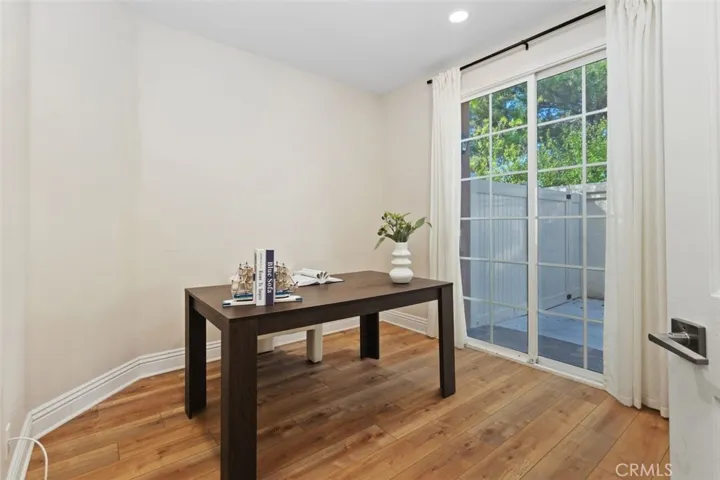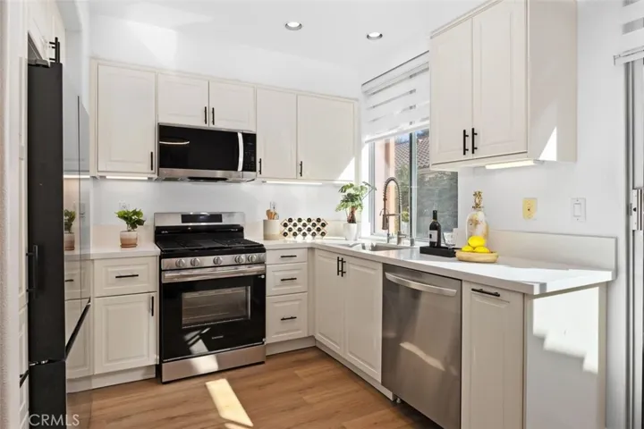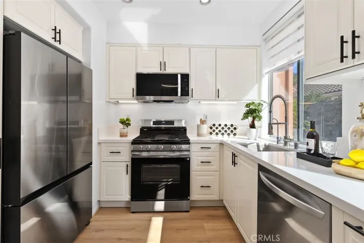 Nestled in the highly coveted Westpark community, this charming single-story detached residence combines tasteful upgrades with a serene greenbelt location. The open floor plan is highlighted by vaulted ceilings, abundant natural light, and seamless indoor-outdoor flow. Enjoy two well-designed outdoor patios perfect for morning coffee, alfresco dining, or simply relaxing in your peaceful surroundings. Thoughtfully upgraded throughout, the home features new luxury vinyl plank flooring, newer cabinetry, sleek quartz countertops, stainless-steel appliances, and remodeled bathrooms with quartz vanities and modern tile floors. The primary suite offers privacy and patio access, while the secondary bedroom also enjoys direct access to its own outdoor space. Situated on a private greenbelt with mature trees and lush landscaping, the home provides a tranquil retreat while still being close to top-rated schools, shopping, dining, and major freeways. Residents enjoy access to resort-style amenities including pools, spas, tennis courts, basketball courts, trails, parks, and playgrounds.