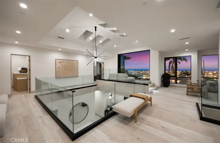 Perched above the coastline, 1210 Kings Road commands unobstructed views of Catalina Island, the Pacific Ocean, and Newport Harbor, presenting a rare blend of timeless architecture, modern luxury, and effortless coastal living. Thoughtfully designed and meticulously crafted, the home spans approximately 6,400 square feet of refined living space. A private elevator serves all levels of the residence, enhancing convenience and accessibility throughout. Beyond the grand entry—with its soaring ceilings, abundant natural light, and sweeping sightlines—the open floor plan unfolds into spaces tailored for both intimate living and unforgettable entertaining. The main level features a chef’s kitchen with dual top-of-the-line appliances, a generous center island, and an architectural wine wall. The adjoining formal dining room sets the stage for everything from quiet dinners to celebratory gatherings. Upstairs, the living room is framed by floor-to-ceiling windows that capture the panoramic views in every direction. A separate family room offers an additional retreat, complete with a full bar—ideal for relaxed evenings or hosting guests. The serene primary suite enjoys unmatched views across the water and includes a luxurious spa-inspired bath with a soaking tub, dual vanities, and a spacious walk-in closet. Four additional en-suite bedrooms provide exceptional accommodations for family and guests. Outside, the estate’s expansive grounds are designed for year-round enjoyment. A sparkling pool and spa anchor the outdoor living space, complemented by a large patio perfect for dining al fresco or entertaining under the coastal sky. The rooftop deck, complete with a fireplace, offers a private vantage point for taking in the ocean breezes, sunsets, and city lights. Ideally situated on coveted Kings Road—just moments from world-class shopping, dining, beaches, and the best of Newport’s coastal lifestyle—1210 Kings Road presents an unparalleled opportunity to own a landmark property in one of Southern California’s most sought-after enclaves.