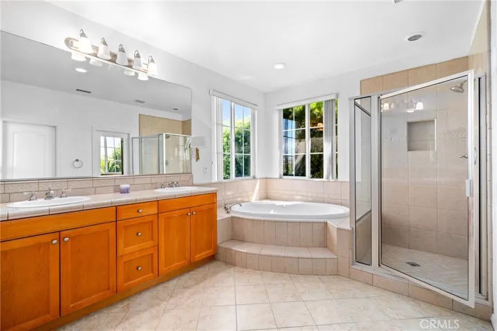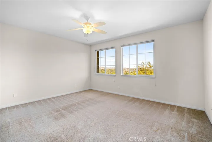 The formal dining room connects to a two-story living room. Upstairs, the spacious primary suite includes panoramic views, dual vanities, soaking tub, walk-in shower, and large walk-in closet. Three additional bedrooms share a Jack & Jill bathroom.