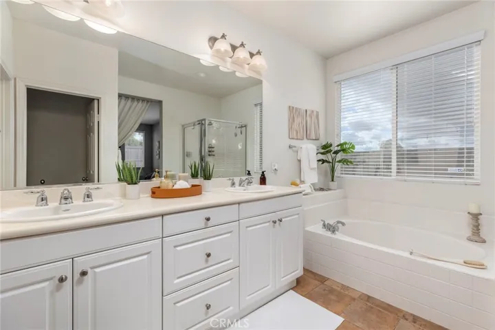 This stunning 4-bedroom, 3-bathroom residence, nestled on a quiet cul-de-sac in the highly desirable Murrieta Oaks neighborhood, perfectly embodies the best of California living. The main level immediately welcomes you with formal living and dining rooms. Also on the main level, you will find the primary bedroom suite, two additional bedrooms, a second bathroom, and a convenient laundry room. The heart of the home features an open-concept design with vaulted ceilings and abundant natural light. The well-appointed kitchen boasts granite counters, a large island, a built-in desk, reverse osmosis water filtration, and extended cabinetry for ample storage, opening seamlessly to the family room with a cozy fireplace. The second level offers flexible living space with a spacious loft, the fourth bedroom, and the third bathroom. Energy efficiency is a key feature, thanks to a whole house fan and 17 leased solar panels with two Tesla backup batteries. Outside, you can relax and enjoy the private backyard, complete with a new Jacuzzi! This home is conveniently located between the I-15 and I-215 for easy freeway access, and is moments away from excellent Murrieta Schools, shopping, dining, and parks. Antelope Hills Elementary School is located within the Murrieta Oaks community. Best of all, there is No HOA!