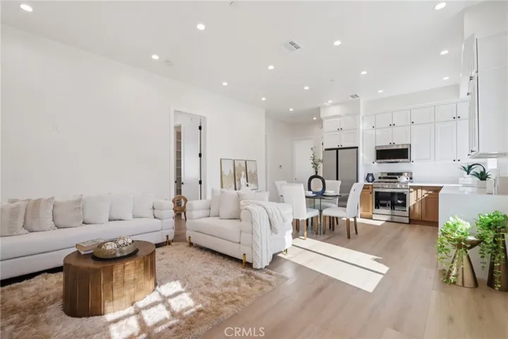 As you step outside to the backyard, you’ll find a lushly landscaped lawn, covered patio and room to add an outdoor BBQ area. At the end of the lot, is a 1,200 square foot ADU with its separate address, (14927 Vose St.) which includes 3 bedrooms, 2 bathrooms, 10-foot ceilings, a thoughtfully designed kitchen with plenty of cabinets for additional storage, Samsung appliances and a dual laundry setup tucked away in a closet. Offering ample privacy and space, the home is ideal for a multigenerational living or for additional income.
