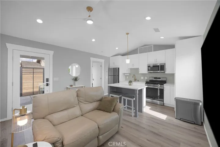 Brand new GORGEOUS DETACHED ADU in fabulous West Yorba Linda neighborhood. Enjoy a private and secure entrance with this state of the art 2025 new build offering approximately 500 living square feet with 1 bedroom and 1 bathroom plus beautiful material and amenities including throughout including: a stunning kitchen with quartz countertops, subway tile backsplash, stainless appliances, island with bar seating and pendant light, and open to the comfortable living area with cathedral ceilings and a ceiling fan, an exquisite bathroom complete with a large shower with subway tiles, sliding glass doors and all new fixtures, inside laundry room, double paned windows, a private patio area, all utilities are included and furniture furnishings are optional and all in a location minutes away from local shops, restaurants and parks.