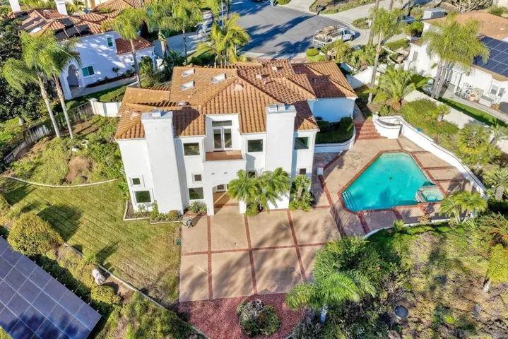 Beautiful 4BR/3.5BA home with approx. 3,537 sq. ft. on over 1/2 acre at the end of a cul-de-sac. This majestic paid off solar powered property offers exceptional privacy, mountain views, and a resort-style backyard with a pool and attached spa. Interior features include soaring ceilings, freshly painted interior, newer windows, and three fireplaces. The spacious floorplan includes a bedroom and full bath on the entry level, ideal for guests or extended living. The large kitchen offers granite counters, stainless steel appliances, double oven, a huge center island, and abundant storage—perfect for cooking and entertaining. The primary suite features a generous walk-in closet and a large master bath with soaking tub and separate shower. Additional bedrooms are well-sized and full of natural light. Other highlights include dual-zoned heat and air, a private setting with no through traffic, and expansive outdoor space for relaxing or entertaining. This home offers the perfect blend of comfort, space, and views—an exceptional opportunity in a highly desirable location.