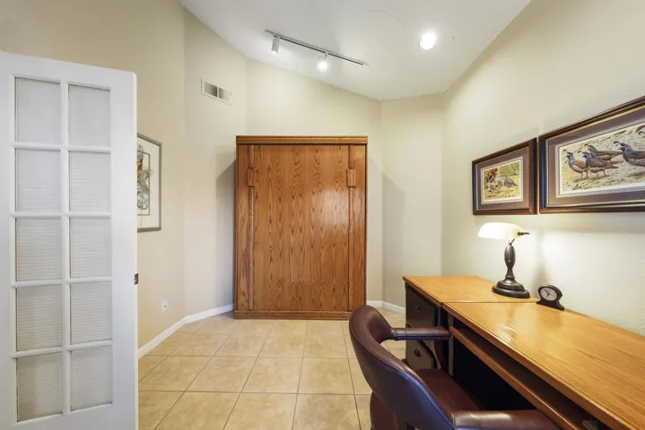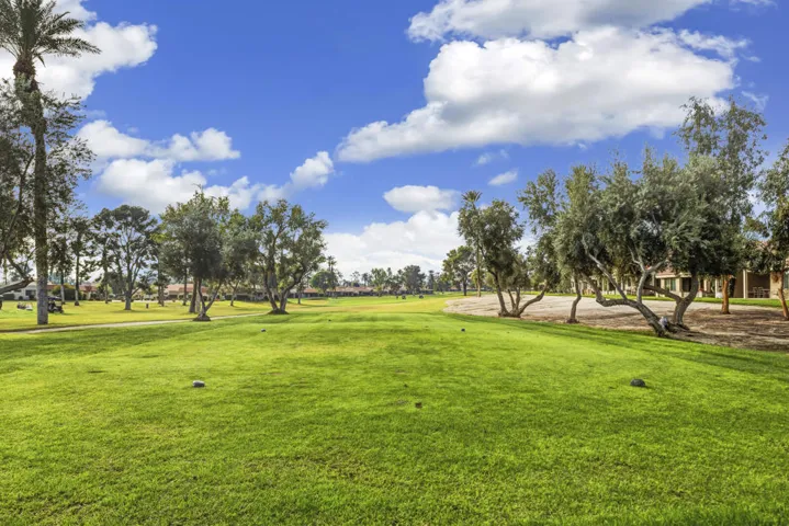 Welcome to this turnkey furnished Champion floor plan with 2 bedrooms, den, and 2 car garage in the guard gated Palm Desert Resort Country Club. This is the largest plan in the community, light, bright, and ready for you to move right in. Open concept great room with gas fireplace and sliders opening onto an expanded covered patio on the 5th tee, with southeast exposure for morning sun and afternoon shade.The den includes a built in desk, storage, and Murphy bed, creating an ideal flex space for office, TV room, or extra guest room. Bedrooms sit apart for privacy and the attached garage adds generous storage for clubs, bikes, and desert toys.Location places you a short stroll or quick cart ride from the clubhouse, dining, pools, tennis, pickleball, and golf. Palm Desert Resort Country Club provides 24 hour guard security, 18 hole championship golf course, large pickleball program, multiple pools and spas, and an active social calendar. Turnkey furnishings allow you to start enjoying the home on day one. Short term rentals are currently permitted, giving you options when you are away.