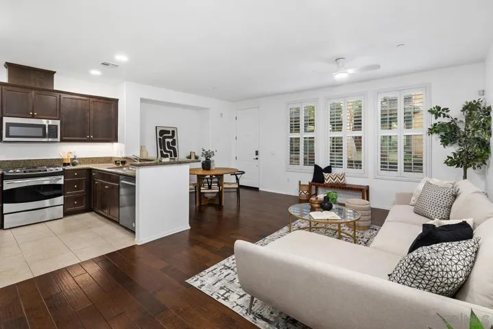 Desirable 2 story in Highlands Village modern townhouse in Carmel Valley.Three bedrooms plus a loft /Work area.Walk to award-winning sage canyon elementary.Open floor plan,Wood floors & Air .The kitchen is equipped with granite countertops, S/S appliances & recessed lighting. Large master suite includes walk-in closet & luxurious bathroom with dual sinks, standalone shower & soaking tub.Included:fantastic recreation centerwith amenities resort-style swimming pool/Spa,Gym.Bbq. Plenty of Guest parking.