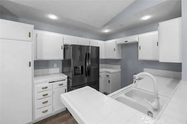 A charming 2 bedroom 1 bath condominium located in Stanton inside the gated community of Crosspoint Village. The condo is located further in from the Boulevard and streets and offers a much quieter location. The condo is has vaulted ceilings, laminate flooring and recently painted inside. This a great quiet and peaceful community with HOA amenities including several pools, spa, hot tubs and a green belt and lots of trees around the community. The home is on the second floor with a large master bedroom with a walk in closet and a large vanity next to the bathroom. There is a large landing at the entrance of the home.