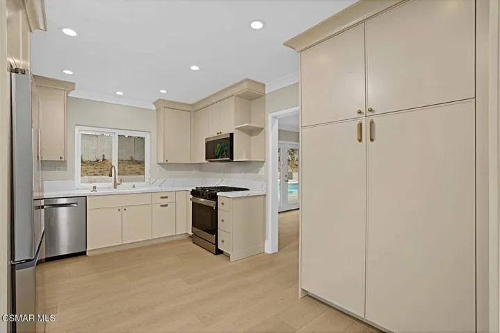 Stunning remodeled single-story home in the highly desirable Shadow Oaks neighborhood of Thousand Oaks. Be the first to lease this beautiful 3-bedroom, 2-bath home that has never been lived in since its complete renovation. Inside, you’ll find new wood-like floors, recessed lighting throughout, upgraded fixtures, and a fully equipped Kitchen. The entire property has been reimagined, including all-new landscaping and hardscape. The spacious backyard is a true oasis with grassy area, sparkling pool, and spa–all newly redone–plus a front porch with mountain views. The primary suite offers dual closets, a modern bath, sliding glass doors opening to the backyard. Attached 2 car garage with direct access. Additional parking or storage is available along the side yard behind an oversized gate. Located in a peaceful neighborhood close to Hendrix Park, shopping, and dining. Minimum 12-month lease–don’t miss the chance to be the first to call this place Home. Gardner and pool service included.