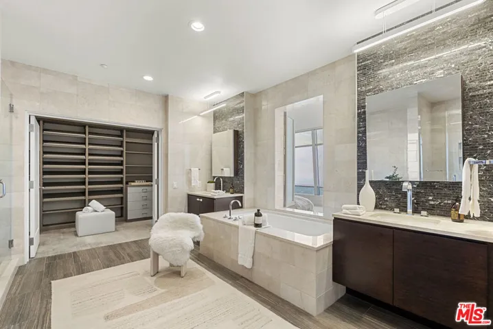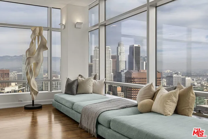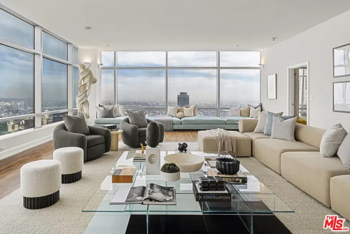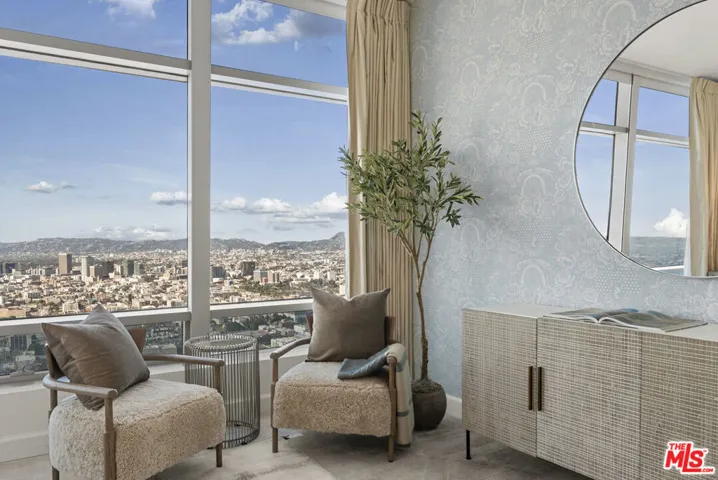 Experience five-star luxury living at The Ritz-Carlton Residences at LA Live. This stunning 47th floor unit is one of the largest square footages in the building and offers breathtaking 270-degree views. Walls of glass look out to the Hollywood Hills, Pacific Ocean and a breathtaking perspective of the downtown Los Angeles skyline. The formal entrance hall opens to the massive living & dining room with landmarks in every direction; The Hollywood Sign, Observatory and so much more…The Chef’s kitchen adjoins the separate and expansive media room with two walls of glass. From there, an art filled gallery takes you to the Primary Suite with sitting area and views to the ocean. The spa-like bath offers double showers, rich stone surfaces and a large soaking tub. All this is completed by two large walk-in closets. Two additional suites with their own luxurious baths are at opposite sides of this spacious unit. White Glove Service includes The Ritz Rooftop Saltwater Pool & Bar, cabanas, valet parking, security, concierge, glass-top billiards, conference room, screening room & access to the hotel’s room service. Situated in the heart of DTLA’s vibrant South Park district, this premier location is just steps from Crypto.com Arena, LA Live, fine dining, entertainment, movie theatres and shopping. Enjoy an easy stroll to Lakers, Clippers and Kings games. A wonderful lifestyle of security, excitement and convenience. Includes a private storage unit.