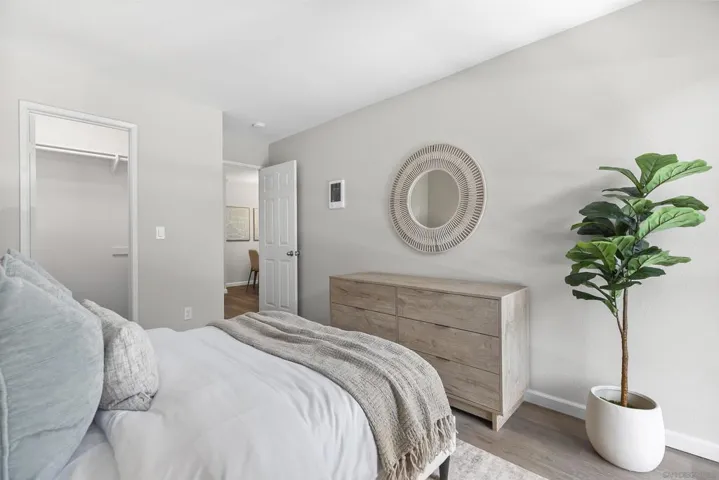 PRICE REDUCTION!Beautifully remodeled top-floor Del Cerro condo with no one above you and peaceful hillside views. This bright 2-bed, 2-bath home offers an open layout with split master suites—ideal for roommates or added privacy. Features include a North East facing main door, a full-size in-unit washer/dryer, upscale vinyl plank flooring, fresh paint, modern fixtures, and a newer wall A/C. The kitchen has a brand-new range, microwave, and dishwasher, and the bathroom has been updated with an epoxy-sprayed shower and frameless glass door. Located in a VA-approved complex, minutes from SDSU. This home is ready for you to move in and make it your own! Seller is transferring newly purchased, professionally curated high-quality furniture at not additional cost. MOTIVATED SELLER!