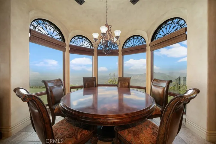 This extraordinary home embodies European charm with modern luxury. High ceilings, custom wall treatments, and elegant European-inspired details are found throughout. The gourmet kitchen features upgraded cabinetry, including a hidden refrigerator, high-end appliances, and a spacious center island. Each room is designed to capture the stunning 270-degree views of the surrounding landscape. The private backyard offers an idyllic setting with breathtaking panoramic views, perfect for entertaining or simply relaxing in solitude.