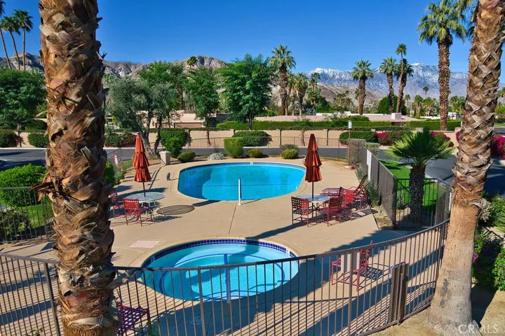 Discover the charm of this beautiful 2-bedroom, 2-bath plus den, Barcelona condo, spanning over 1600 sq ft at Sunrise Country Club. Enjoy breathtaking views of the golf course and majestic West-facing mountains. Ideal for those seeking a serene retreat in a prestigious community. The open and bright kitchen with custom cabinets, Sub Zero refrigerator and breakfast bar. Wet bar is open to both living room and den. A separate den could be used for an entertainment room, reading space or just lounging. The separation of bedrooms allows privacy while entertaining guests. Two spacious bedrooms, both with large wall-to-wall closets. Primary bath has walk-in tub. Indoor laundry and a 2-plus car garage. Sunrise Country Club has an 18-hole executive course and is also well-known for its Tennis Club. multiple community pools and spas. A newly renovated fitness center, bocce ball courts, and pickleball courts complete the variety of activities offered. The recently renovated clubhouse offers fine dining as well as a casual lounge. In addition, downstairs is the Grill for more casual dining. Sunrise Country Club is close to Eisenhower Medical Center, The River, El Paseo which is known for great restaurants and shopping.