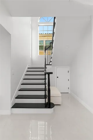 finishes include 10-foot ceilings, marble and wood vinyl flooring, dual-panel windows, LED recessed lighting, raised panel doors, quartz countertops, and designer fixtures. The soaring 21-foot staircase with a Palladium window enhances the sense of space and grandeur. The home is designed for sustainable, comfortable living with central A/C, a tankless water heater, and an advanced PAID SOLAR SYSTEM. Its open-concept layout is ideal for entertaining, featuring a formal living room, a separate dining room, and a stunning family room with a stacked stone gas fireplace. The chef’s kitchen boasts a large quartz center island, soft-close shaker cabinetry, stainless steel appliances. The luxurious primary suite offers a retreat-like experience with dual vanities, a free-standing tub, an oversized walk-in shower, and two enormous walk-in closets. Additional amenities include motion-sensor lighting in all bathrooms and an upstairs laundry room with storage cabinets. Outside, the property impresses with its stacked stone siding, tile roof, spacious 2-car garage, private backyard with a covered patio, and block wall fencing—all nestled at the end of a spacious cul-de-sac allowed up to 9 parking spaces. With its blend of premium features, impeccable design, and prime location near top schools, close to shopping, Little Saigon, and the beach. This extraordinary home is truly a rare find.