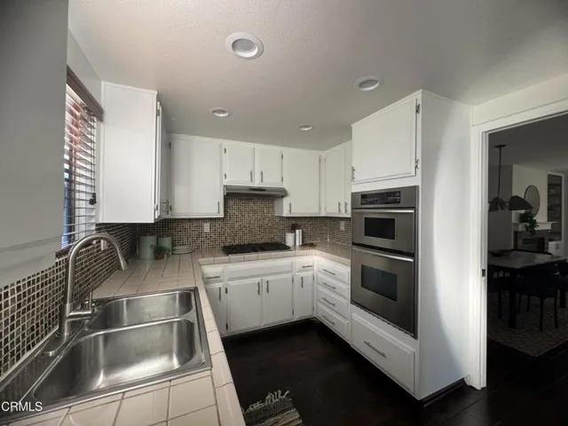 Tucked quietly at the back of the building, this beautifully upgraded townhouse offers direct garage access and an unbeatable location near Paseo Colorado, the Metro Gold Line, and Old Town Pasadena. The stylish kitchen shines with stainless steel appliances, refinished cabinets, and a chic tiled backsplash. Upstairs, both bedrooms feature dramatic vaulted ceilings, ample closet space, and sleek modern doors. Enjoy the convenience of an extra-spacious garage with abundant storage and a separate laundry room. Fresh paint, central A/C, gorgeous hardwood floors, a powder room, recessed lighting, a wet bar, peaceful mountain views, and a private patio complete the home. A townhome of this quality in such a prime location is an exceptional find.