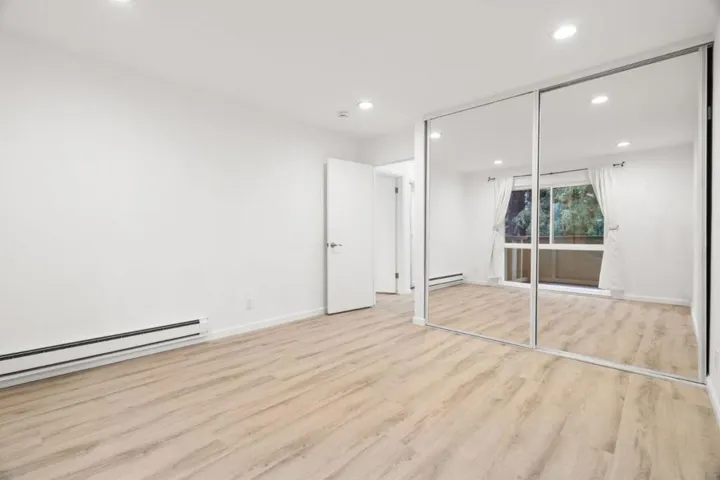 Beautifully updated, move-in-ready condo perfectly tucked in one of Mountain View’s most convenient neighborhoods. Refreshed with new flooring, an updated kitchen, and modern bathroom vanities, this condo offers a warm, inviting feel. The spacious living and dining area open seamlessly to an x-large extended private balcony – one of the only 3 in the entire building – creating an ideal retreat for morning coffee, quiet evenings, or working outdoors under the trees. The redesigned kitchen features crisp shaker cabinetry, new stainless steel appliances, quartz countertops, and stylish open shelving. Generous bedrooms provide comfort and flexibility, with the primary suite offering abundant closet space. This community is thoughtfully designed to support an easy, balanced lifestyle, offering a pool, sauna, gym, and secure entry. Practical perks include an additional storage unit and assigned covered parking along with extra gated parking, ensuring convenience and peace of mind. Located minutes from Google, LinkedIn, Caltrain, El Camino shops/dining, parks, and major commuter routes, this home blends serenity with unmatched accessibility. A perfect fit for professionals, first-time buyers, downsizers, and investors seeking a turnkey in the heart of Silicon Valley.