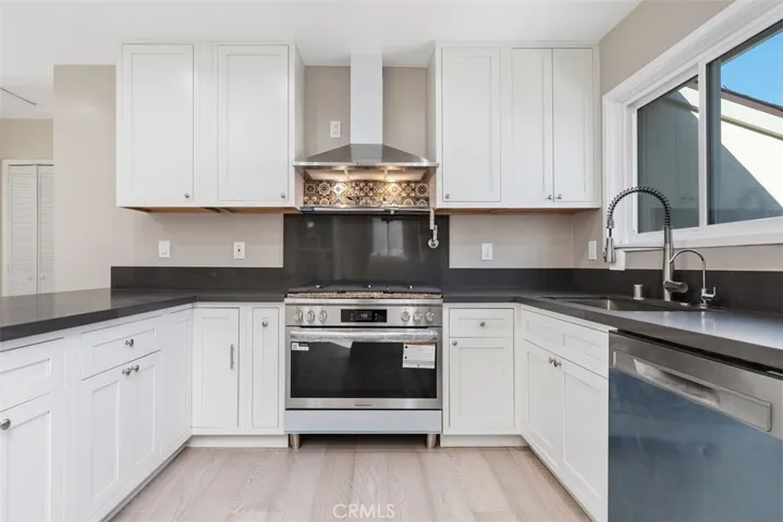Turnkey Gem! Single Story 3 Bedroom, 3 Bath, pool home located on a quiet corner lot with complete remodel from roof to flooring! All new electrical, Pex piping, new roof, new flooring, new baths, new kitchen and newly plastered pool. Enter into an open concept living/family area complete with in-wall electric fireplace, eating area and entertainers kitchen with a 9 foot quartz counter peninsula. The kitchen also has new cabinets, new high end Frigidaire stainless steel appliances, pot filler at the stove, steel sink, disposal, and reverse osmosis water system. All 3 bathrooms have new vanities, fixtures, toilets, tiled showers/bath and LED lit mirrors. New paint and tile/vinyl plank flooring throughout. New quiet AC/heat pump system with attic condenser, new ducting, attic electric fan with thermostat. Fully upgraded electrical system with new electrical panel, 220V outlets (garage EV charger + stove) and new electrical outlets and switches. Enjoy time in the backyard with 9ft deep pool complete with new heater, filters, and gas fire pit for those cool evenings. Security system includes exterior cameras, window and door alarms around pool access, doorbell camera. Exterior upgrades include a new 30 year roof, new sprinkler system, exterior lighting, spanish style tile porch, and new front door. Conveniently located near CSLB, shopping and entertainment, and nearby freeway access. So many features that you have to see to believe!