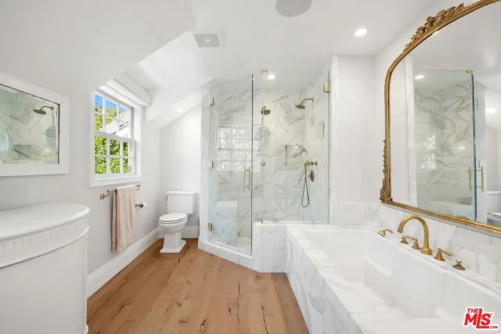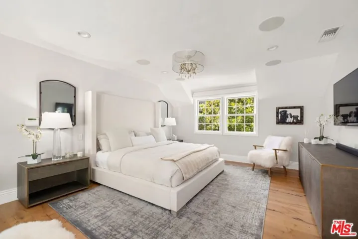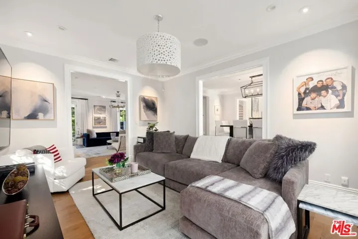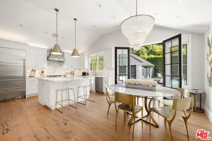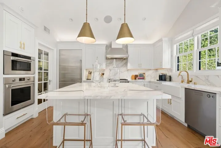 Serene, stylish, and effortlessly private, this impeccably renovated traditional home is set behind secure walls and gates. Flooded with natural light and defined by soaring ceilings and an intuitive, open layout, the residence showcases exceptional craftsmanship and luxury finishes throughout. With 3 bedrooms and 5 baths, the home is enveloped by lush landscaping, mature magnolia and fruit trees, white roses, and greenery that ensures complete privacy.The family room flows seamlessly into an elegant dining area and a chef’s kitchen outfitted with state-of-the-art Wolf and Sub-Zero appliances, all overlooking a resort-like backyard with a sunlit pool and outdoor dining space. The tranquil primary suite features French doors to a private balcony, a generous walk-in closet, and a spa-quality bath.Thoughtful upgrades include European oak floors, Waterworks baths, Circa lighting, Ralph Lauren window treatments, and fully updated systemsroof, plumbing, HVAC, electrical, and siding. Smart-home integration and a comprehensive security system complete this turnkey offering. Private, sophisticated, and effortless, this home embodies the best of Beverly Hills living. Easy to show.