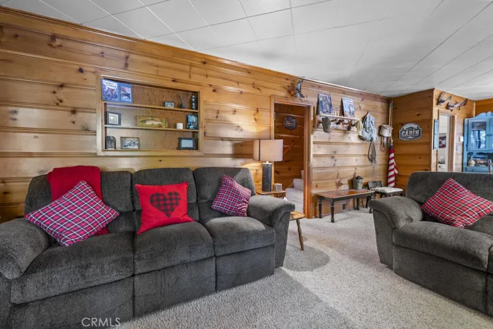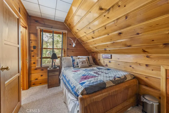 Introducing a charming 1,226 sq ft log cabin nestled in a serene, heavily treed area of Big Bear Lake! This inviting 3-bed, 2-bath retreat blends classic mountain character with rustic elegance. Warm Knotty Pine accents and a striking native rock fireplace create a cozy lodge feel, while the country-style kitchen—complete with a generous pantry—offers great functionality for everyday living or weekend escapes. A separate laundry area adds convenience. The well-designed layout includes a main-level bedroom, with additional bedrooms upstairs for added privacy. Step outside to a spacious back deck, perfect for relaxing among the pines or entertaining guests. Situated on a 9,000 sq ft lot, the property provides a peaceful, wooded setting, and the detached garage offers excellent storage for mountain toys! Located close to the lake and just a short drive to the Village, restaurants, shops, and ski resorts, this home is ideally positioned for year-round enjoyment. A wonderful opportunity to own an authentic Big Bear retreat in one of the area’s most desirable neighborhoods.