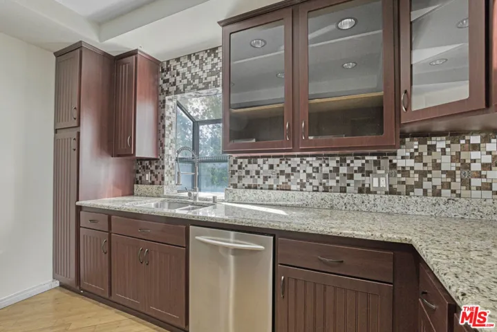 Discover unmatched value and resort-style living in this chic, single-level Sherman Village condo. As a highly desirable corner unit on the outside of the building, you’ll enjoy unparalleled peace and privacy with only one shared wall and no foot traffic past your door. Step inside to an impressive open-concept floor plan, bathed in natural light, featuring elegant, recessed lighting and a cozy fireplace that anchors the living space, while treetop views from the picture windows add a serene touch. The large, well-appointed kitchen is perfect for any home chef, and you’ll appreciate the ultimate convenience of in-unit laundry. Retreat to the spacious master suite, complete with a huge walk-in closet, a private patio balcony, and a fabulous ensuite bathroom. Your dedicated 2-car tandem parking space is in the subterranean garage below Building C, offering a close and incredibly convenient walk to your unit. This is truly resort-style living with its sought-after community amenities: secure entry, elevators, two sparkling pools, a relaxing spa, state-of-the-art gym, and a recreation room. HOA dues include cable, water, trash, Internet, and earthquake insurance for the building. Enjoy a premium location just walking distance to Ventura Boulevard’s best shops and acclaimed restaurants and benefit from easy access to major freeways and the popular Sherman Oaks Westfield mall. Don’t miss the opportunity to own this private, perfectly located gem!