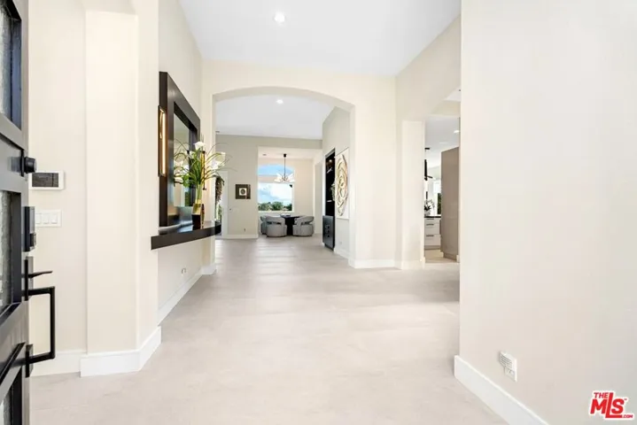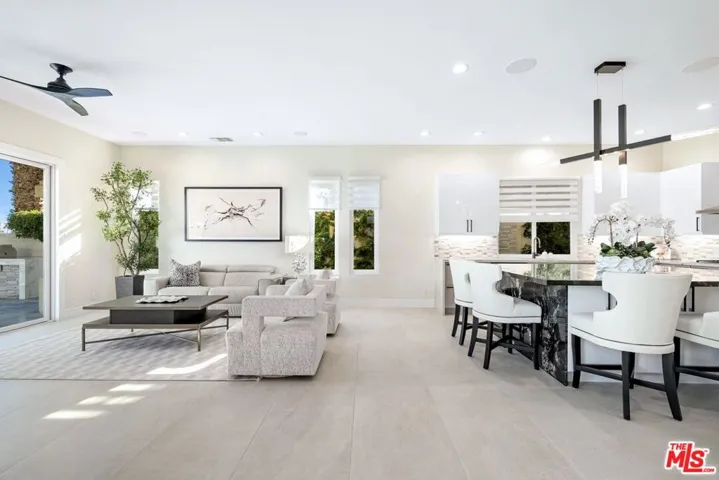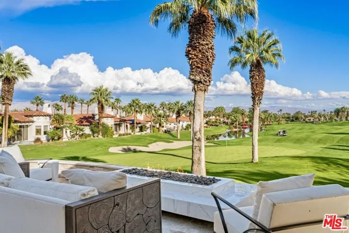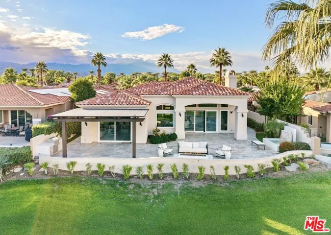 This beautifully reimagined Ocotillo 3 floor plan, featuring 3 bedrooms and 3.5 bathrooms, stands apart as one of the finest offerings in the community. A TRUE, comprehensive FULL-home remodel completed in 2021/2022. It is also one of only 1 in 20 PUD homes offering a straight, unobstructed fairway view, giving it an exceptionally desirable setting. Inside, the home showcases luxury finishes throughout, including natural stone countertops, custom built-in cabinetry, professionally designed closet systems, motorized remote-control blinds, and all new tiled showers and bathrooms. The chef’s kitchen features premium stainless-steel appliances: a Sub-Zero refrigerator and freezer, Wolf cooktop and double oven, Wolf hood, Sharp microwave drawer, KitchenAid dishwasher, and dual KitchenAid under-counter beverage drawers. All major systems have been replaced within the last four years, including NEW windows and sliders, the HVAC system, and two water heaters. An owned, recently added water-softening system provides elevated water quality. The home also includes OWNED SOLAR with two Tesla backup batteries. The backyard is designed for relaxation and entertaining, with tumbled travertine pavers throughout, a pergola, a built-in BBQ, tranquil water fountain feature, and fire pit. All perfectly positioned to overlook the rare, unobstructed fairway panorama. Additional highlights include a two-car garage plus separate golf cart garage, paver driveway, epoxy garage floors with built-in cabinetry, and a mini-split A/C in the garage. The laundry room includes a convenient dog-washing shower. The home is offered FULLY FURNISHED with high-end furniture per inventory list. A club membership is available with no wait.