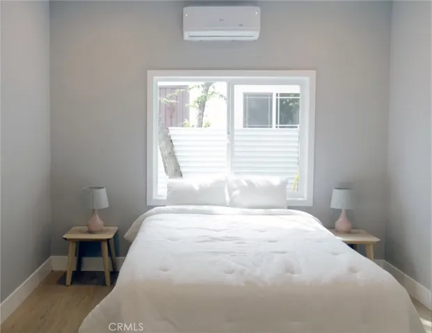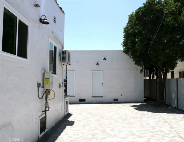 The exterior courtyard is finished with custom modern pavers, gated privacy fencing, and mature landscaping. The clean white stucco, updated dual-pane windows, and minimalist design give the property a polished, modern appeal while preserving its architectural charm. Although no off-street parking is included, the ample street parking and central location more than compensate.