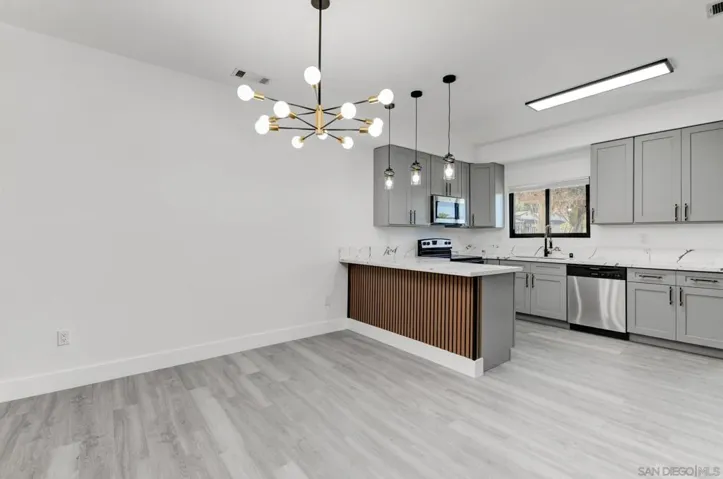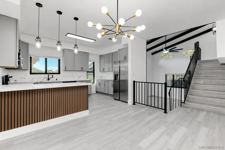 Complete Remodel! Beautiful 4 bedroom, 3 bath with swimming pool! Grand entrance features cathedral beamed ceilings and wonderful natural light. Large family kitchen with lovely peninsula, pendant lighting, ample cabinets, and lovely quartz countertops. Large dining room, separate living room, family room with fireplace and more. Primary bedroom with en-suite and walk-in closet sits up above all. 3 additional large bedrooms and a second full bath make this ample 2200 sqft home perfect for all. Fully fenced and gated lot, large front yard with decorative fountain, large tiled patio with pergola, gated parking, solar panels, and mature fruit trees. This home has it all.