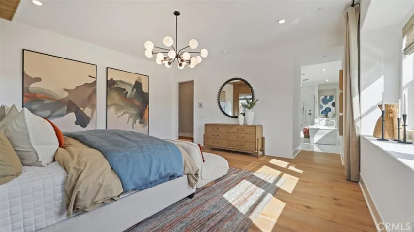 This stunning home showcases a bedroom with its own bath on the first level, which is ideal for Guests, along with an Office area. An inviting open floorplan includes a Great Room, and a chef’s kitchen with a spacious walk-in pantry, along with Wolf appliances and a Sub-Zero refrigerator! The oversized kitchen island, with quartz counters, makes for easy entertaining! The sliding glass doors opens up to the California Room with a cozy fireplace, seamlessly extending your living space into the backyard.