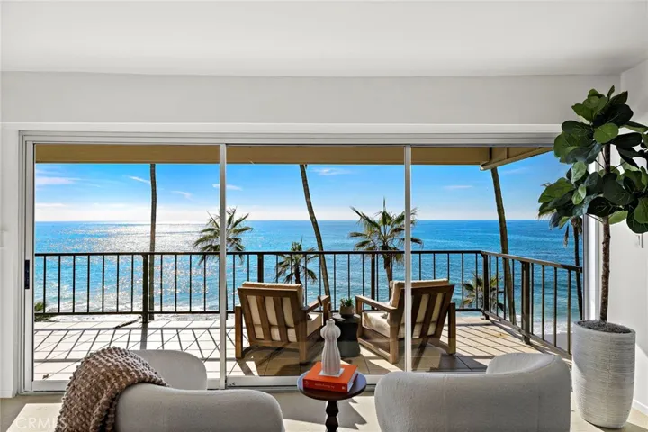 Laguna Royale’s Unit #18 sits just above lush tropical gardens and the sandy path to the beach, offering a rare oceanfront blank canvas—two bedrooms, two baths, and endless potential to craft your dream coastal home. Step inside and the world opens up: sweeping, ever-changing views of Catalina Island, passing boats, soaring sea birds, fiery sunsets, and, after dusk, a sparkling coastline of twinkling lights. Enjoy 24-hour security, two dedicated parking spaces, a private storage room, and effortless access everywhere via two spacious elevators—to the beach, the heated pool and spa tucked into tropical greenery, the gym, and a serene community terrace with fire-pit tables perfect for taking in the sunset. Stroll north along the sand to the Montage or Lost Pier Café, explore charming nearby beach towns, tee off at The Ranch, wander local harbors, or jet away from nearby John Wayne Airport—though once you’re here, you won’t need a vacation.