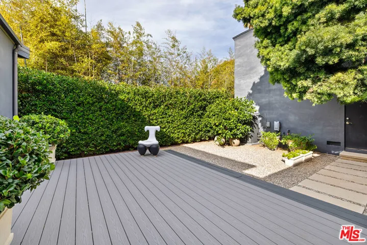Welcome home to this airy, contemporary two bed/two bath beach bungalow, where vaulted shiplap ceilings and broad windows fill the space with natural light. No expense was spared in its design, from top of the line appliances and designer lighting to the luxe primary bath with dual sinks and brass fixtures. Unit C is the only unit in this petite complex that boasts its own private, dedicated outdoor space with a yard and deck, with access to its own single car garage. In-unit laundry room is an added convenience, and tenants can enjoy the communal veggie garden in the main courtyard. The unit is heated via radiant heat (heated floors), cooled by central air throughout, and is offered as a lease beginning as early as mid-February. Located in one of the city’s most enviable neighborhoods, north of Montana, living here makes getting in a car completely optional. R+D Kitchen, Whole Foods, Erin McKenna’s Bakery, Aero Theatre, excellent public schools, and a laundry list of other hot spots are all at your fingertips. Street parking permits are available through the city for additional parking.