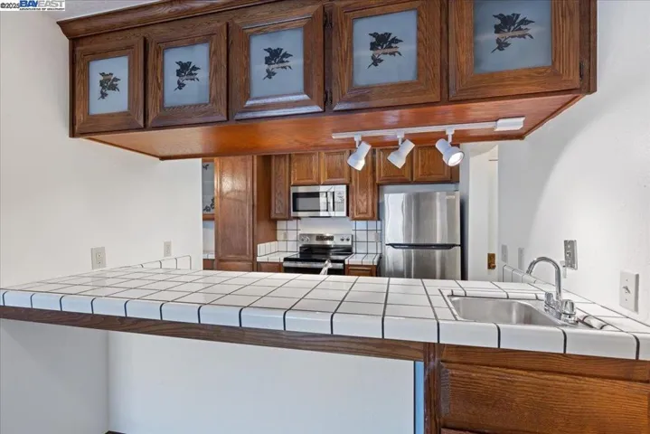 Price reduction –must see!! Located across from Cal State East Bay, this condo has good rental potential and is also spacious for buyers looking to downsize. Recently upgraded with some new stainless steel kitchen appliances, shower stall and faucets in master bath along with new flooring, new carpet, unit interior painted, new window coverings in both bedrooms, some electrical work done. With wide hallways it can be easier for owners who need it, to move around. Not to mention the beautiful swimming pool, spa and clubhouse. Great connectivity to freeway access for Bay Area or San Francisco commuters.