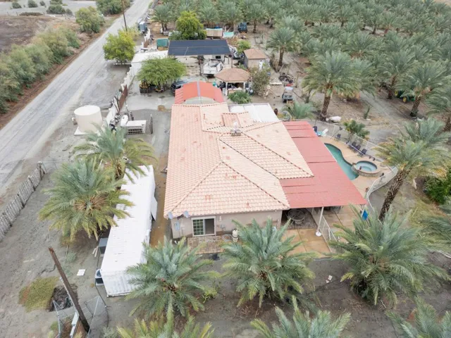 Discover a truly exceptional 10.23-acre horse property ranch, perfectly situated on a prime corner lot at Harrison St. and 61st Ave. This rare offering combines modern living, agricultural opportunity, and incredible event-ready amenities–all in one stunning setting.Built in 2017, the custom home features 3 spacious bedrooms and 2 beautifully appointed bathrooms. Inside, you’ll find elegant wood-like flooring throughout, giving the home a warm and inviting feel. The kitchen showcases rich granite countertops, which are also matched in both bathrooms, emphasizing the quality craftsmanship found throughout the home. Step outside and enjoy your own private oasis: a gated pool and jacuzzi, complete with a covered patio that offers serene views of the surrounding palm trees and mountain backdrop–the perfect spot to unwind or entertain guests.In addition to the main home, the property includes a 2-car garage and two detached bathrooms, ideal for hosting gatherings. And this ranch is truly designed for celebrations of all kinds–whether weddings, quinceaneras, family events, or weekend get-togethers, there’s a dedicated event area ready for use. A beautifully built gazebo sits perfectly positioned to overlook the entire ranch, offering peaceful views of the land and its towering palms.Agricultural lovers will appreciate the 600+ producing date palm trees featuring multiple varieties. With a packing room, bands, and a cold storage unit, this property is fully equipped for production. Water access is abundant with both canal water and a private well, supporting farming, ranching, and livestock.Whether you’re dreaming of a full-scale ranch, an income-producing agricultural operation, an event venue, or simply a private retreat, this property delivers unmatched potential. Plenty of space allows for horses, chickens, goats, pigs, and more–you name it, this ranch can accommodate it.This is the unique opportunity you’ve been waiting for. Schedule your private showing today and experience all that this incredible ranch has to offer.
