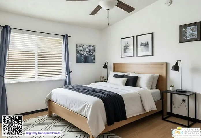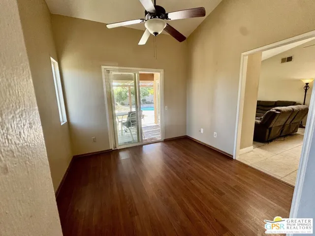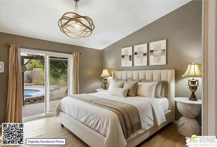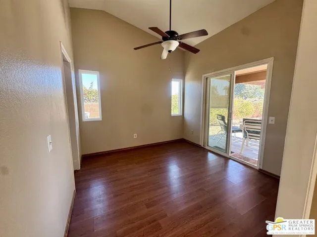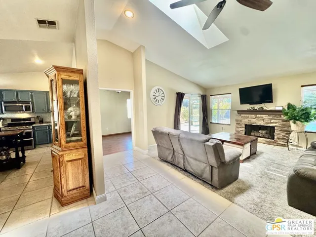 The “Pearl” end lot on Perlita Rd. This home is one that has the best in class of orientation, lot size and views in this neighborhood. Large end lot pool home located in an excellent school district!!! This home has some updates such as a new roof membrane (2024), water heater (2024), pool heater, filter and motor (2024), dual paned windows (2024), skylight (2025), exterior paint (2024), Oven (2024). It features an exterior block wall around the backyard, den, skylight, vaulted ceilings, solar panels, desert landscaping, citrus grove, storage shed, outdoor fire pit and rain gutters. A park like setting welcomes you from the curb through the large front yard. Step inside the front door and take in the high ceilings, gas fire place and windows and sliding glass door that showcase the gorgeous backyard and pool views. Actually the Leisure area faces south and the entire south side of the house (Den, Living room and primary bedroom) have many windows and doors providing the optimum lifestyle of indoor/ outdoor living. Step out under the pergola, past the gas fire pit and storage shed and you will find an array of citrus trees including grapefruit and oranges. Take your selection back into your open concept kitchen and dining room which features some wood shutters on a large bay window. The owner removed a wall many years ago that used to separate the kitchen and dining room. Step into the hallway and into the large primary bedroom which features a walk in closet and bathroom with water closet that contains a shower and commode with closing door. Take a walk down the long hallway where you will find 2 other bedrooms, a full bathroom and a powder room. All of the 3 bedrooms have ceiling fans along with the dining room. At the end of the hall is a laundry room and garage entrance. The garage features a large window above the remote control door. There is also a door that leads from the garage to the side yard which has a nice paved walkway with gate! Most of the ceilings are smooth, there are some custom closets and a metal security door at the entrance! Imagine spending early mornings in your open concept area or the den/ patio area drinking your favorite coffee with family at your private desert resort oasis! Buyer to verify all information