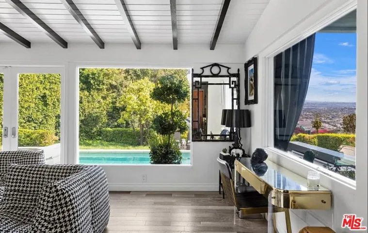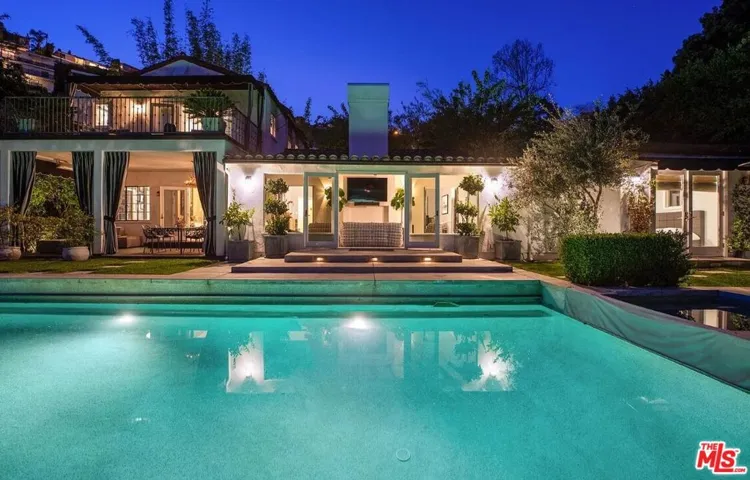 Available fully furnished and turnkey for short or long-term rentals! Tucked off Sunset Plaza down a semi-private lane with access from a quiet side street that provides a secluded entry and extra parking this gated 1920s Spanish home captures sweeping city-light views. Recently upgraded with a new central HVAC system, the property offers three bedrooms and three bathrooms in the main house plus an attached 1-bed/1-bath guest suite by the pool, totaling four bedrooms. The living room features impressive volume, a dual-sided fireplace, and doors that open to an enclosed veranda for effortless indoor outdoor living. The formal dining room flows to a covered patio with lava-stone flooring. A chef’s kitchen showcases Valcucine cabinetry, integrated refrigeration, and a bright breakfast area. The primary suite includes a private balcony overlooking the city, while the additional bedrooms each have updated ensuite baths. Outside, enjoy lush gardens with a grassy area, a resort-style pool and spa, an outdoor pool shower plus a second outdoor shower, and a ping-pong table. Pets (dogs/cats) welcome. The home includes AC, pool, city views, and curated designer furnishings and art throughout.