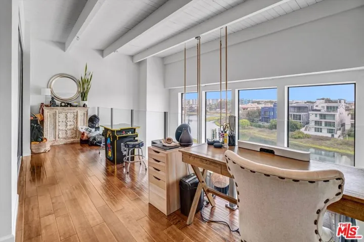 ALL UTILITES INCLUDED in this sought after Marina del Rey condo on the Peninsula. Located Just steps to the sand, this amazing, three-story town home has great energy and feels fresh and welcoming. Its located in the center of the peninsula offering the ultimate costal lifestyle experience. It is Beautifully furnished and equipped with everything you need to move right in and get busy relaxing. The main living area covers an entire floor with soaring ceilings, floor-to-ceiling windows and glass doors that open out to a sizable balcony with sweeping views of the canal and main channel. Concrete flooring, chic custom lighting, and a sparkly, crystal filled corner fireplace create a warm ambiance. The kitchen includes stainless appliances and sleek counters including an open bar to the dining/living area all which provide a wonderful and functional environment for great entertaining. The two bedrooms are separated nicely on different floors for total privacy. The primary bedroom is spacious, bright and has views of the canal and plenty of closet space. The en-suite, spa-like bathroom has designer tile, a huge, striking, free-standing tub and an even bigger, separate shower. Cool, Gucci designer wallpaper adds a playful touch of whimsy! The 2nd bedroom is on the top level and has an attached loft which makes a great office area with views for days as well as a large, covered patio/balcony with ocean views where you can enjoy the sun set every night! Two-car gated, garage with direct access and Tesla Charging station makes this the perfect luxury beach pad. A completely separate but attached studio may be available for additional rent. 3months is ok. Please call for more info.