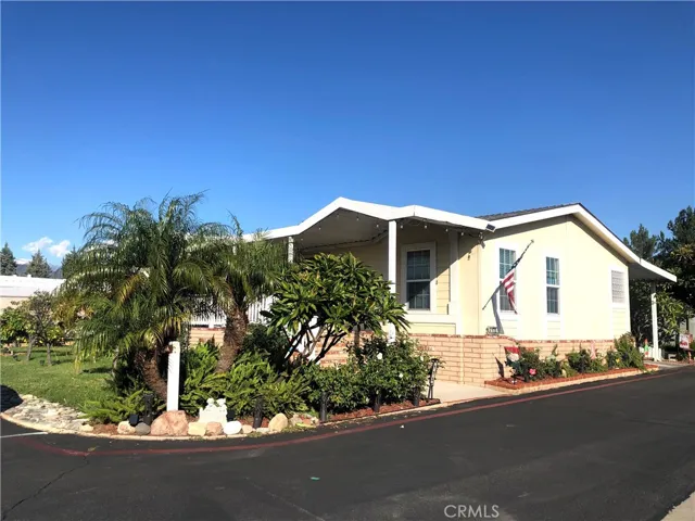 A rare find in the highly desirable Rancho Glendora Mobile Home Park! This spacious home sits on a double corner lot and features an expansive front porch that runs the length of the home, offering wonderful outdoor living space and beautiful views of the San Gabriel Mountains.