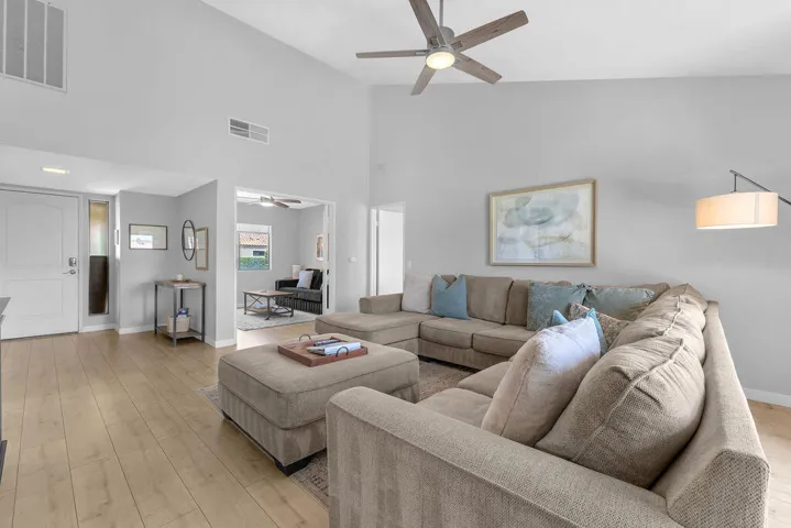 Upgraded, Furnished Golf Course Condo with Den in Palm Desert Resort Country Club. This spacious, updated condo offers the ideal blend of comfort, flexibility, and resort style living perfect as a full time home, vacation getaway, or rental property. Located in the highly desirable Palm Desert Resort Country Club, this unit stands out with a rare bonus den that functions perfectly as a 3rd bedroom or office, along with a larger floor plan that gives you more room to relax and entertain. Inside, you’ll find modern cosmetic upgrades throughout and a clean, stylish design. Sold fully furnished, it’s move in ready and short term rental approved, making it a smart choice for investors and second home buyers alike. Enjoy golf course views from your private patio and take full advantage of community amenities including 21+ pools and spas, tennis and pickleball courts, cafe and a public golf course. More space. More flexibility. More opportunity. Right here in the heart of Palm Desert.