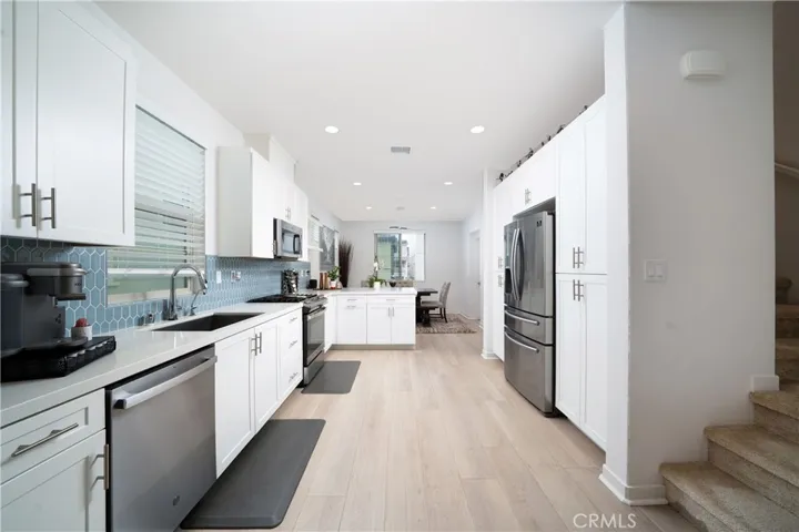 Discover elevated Southern California living in this almost-new, exquisitely upgraded detached residence in the coveted, amenity-rich enclave of Rancho Mission Viejo. Welcome to 242 Goldfinch, a 2023 Tri Pointe masterpiece tucked within the intimate and sought-after Wildrose neighborhood of Rienda. A gated, freshly landscaped front yard with manicured hedging and lush, low-maintenance turf creates a polished first impression before you step inside. The oversized tandem two-car garage offers direct access and showcases epoxy flooring, a whole-house water softener, dual EV chargers, a tankless water heater, and an 8-panel paid-in-full solar system, ensuring comfort wrapped in efficiency. Ascend to the main living level where sunlight moves through an elegant open-concept layout. This elevated space is artfully composed of a dining area, inviting living room, powder room, and balcony with idyllic community views. The designer kitchen is a showpiece, featuring soft-close cabinetry, chic open shelving, a contemporary tile backsplash, stainless steel appliances, and a generous single-basin sink, all complemented by premium wood-look luxury vinyl plank flooring. The upper level reveals two serene bedroom suites alongside a conveniently placed laundry area (washer, dryer, and refrigerator all included). The secondary suite enjoys its own ensuite private bathroom, while the indulgent primary retreat offers a personal balcony, dual sinks, and a custom-organized walk-in closet designed for effortless organization. Living in Rienda grants access to a world of resort-inspired amenities: sparkling pools, refined clubhouses, miles of trails, verdant greenbelts, and the stunning Boulder Pond outdoor escape. As a resident of Rancho Mission Viejo, you also inherit the exceptional offerings of Esencia and Sendero, with coastal treasures like Old San Juan, Dana Point, and San Clemente just moments away. Move in without delay and experience the sophistication, ease, and modern elegance that define life at 242 Goldfinch.