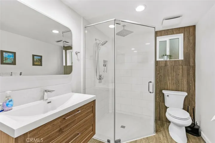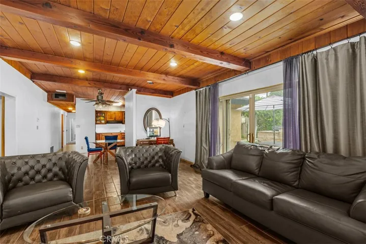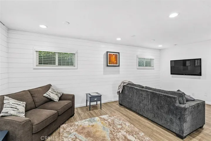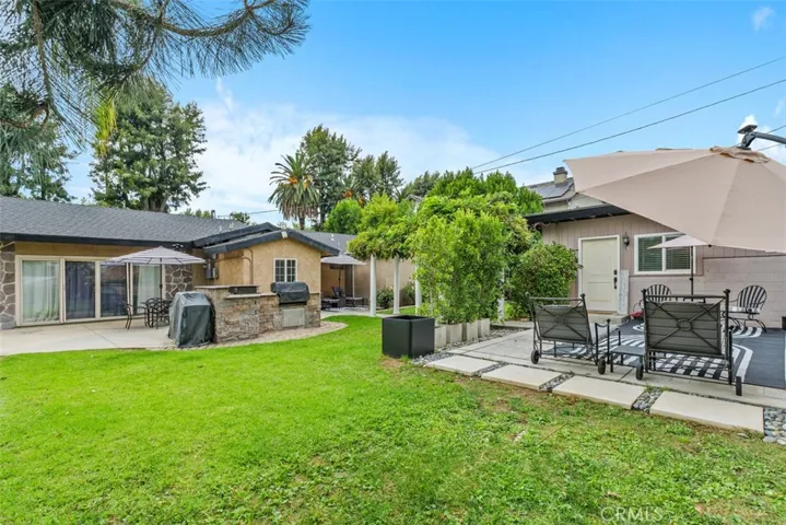 The home features well-appointed bedrooms including a spacious primary bedroom, providing retreat-like comfort. Within the primary bedroom, you’ll find the ensuite spa bathroom and walk-in closet with a built-in safe. What makes this property particularly special is the permitted one-bedroom, one-bathroom ADU, offering flexible options for additional living space, home office space, or potential rental income. The ADU comes furnished with a King size bed, dresser, two TV’s, appliances, and outdoor patio furniture. Other key features of the property include RV parking, solar, new plumbing, tankless water heater, porcelain flooring throughout, central video cameras, two separate electrical panels, and a custom built-in barbecue in the backyard.