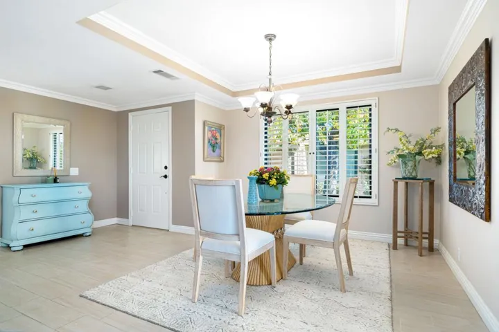 Leased Jan. – March 2026. Available April $7000, May & June $5000 per month. Spectacular South Mountain, Lake and Fairway Views from this charming 3 Bedroom – 3 Bath home located behind the gates of Chaparral Country Club. The bright, open floor plan is spacious with lots of natural light from the large windows, Atrium and Skylight. This lovely appointed home offers 3 bedrooms each with their own en-suite bath and TV’s in each room. Upgrades include Tile flooring, shutters, baseboards, ceiling fans and crown molding. Living Room has a Flat Screen TV, full brick walled Fireplace and a slider that leads out to the patio and views looking out across the green Fairway. A bright white Chef’s Kitchen has a Breakfast Nook and seating for 4. Separate Dining area for 6. The spacious Primary Suite has a King-size bed, TV and Walk-in closet and Bath with Separate Shower. Guest Bedrooms one has a Queen-size bed and one King-size bed. Separate Laundry room. Step out to the covered Patio with your private BBQ; enjoy your morning coffee or evening cocktails as you marvel at the expansive views of the Southern Mountains beyond. Chaparral Country Cub offers Pickleball, Tennis, Fitness Center plus main Clubhouse. Basic Cable TV, Internet included with Lease. Centrally located in Palm Desert and close to renowned El Paseo’s upscale shopping/restaurants, McCallum Theater and more.