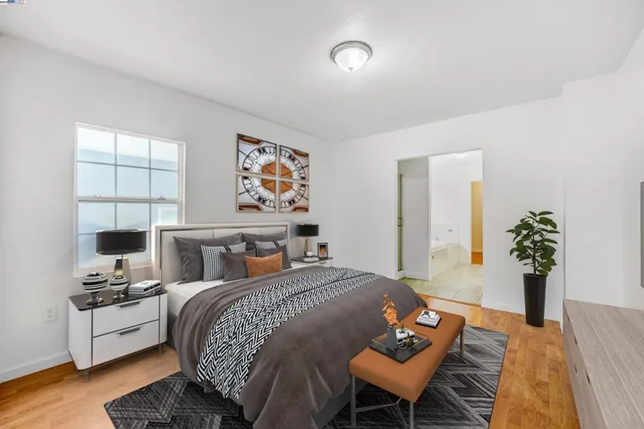 Step into your Oakland glow up. This 3 bed, 2 bath cutie starts strong with a bold red door and bright, airy spaces that instantly feel like good energy. Natural light pours across the laminate floors, and the open layout gives you a spacious living and dining flow that’s perfect for hosting, lounging, or accidentally becoming the friend who always has people over. The kitchen is wide, bright, and ready for action with plenty of cabinet space and room to move. The showstopper is the oversized primary suite, featuring a walk in closet plus a Jacuzzi tub that basically whispers take a break, you deserve it. Slide open the rear door for fresh air, backyard daydreaming, or your morning sip ritual. Located in a lively, growing Oakland neighborhood, you’re minutes from BART, major freeways, the ferry, parks, and local eats. The long driveway handles multiple cars with ease, and the oversized backyard is your blank canvas: garden, gatherings, ADU dreams, you name it. Stylish, spacious, and ready for its next chapter this home is the vibe you’ve been waiting for.