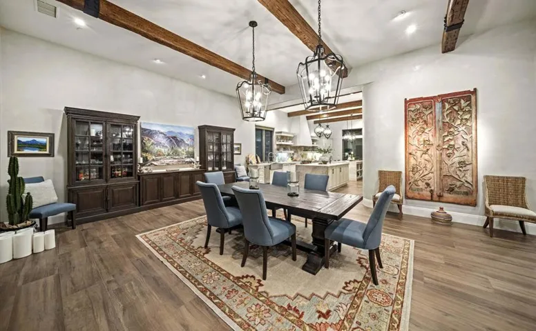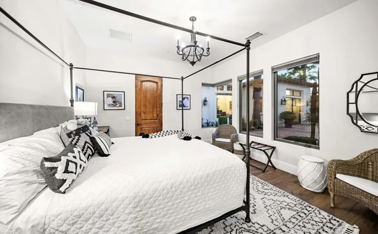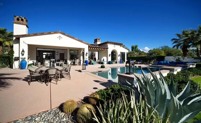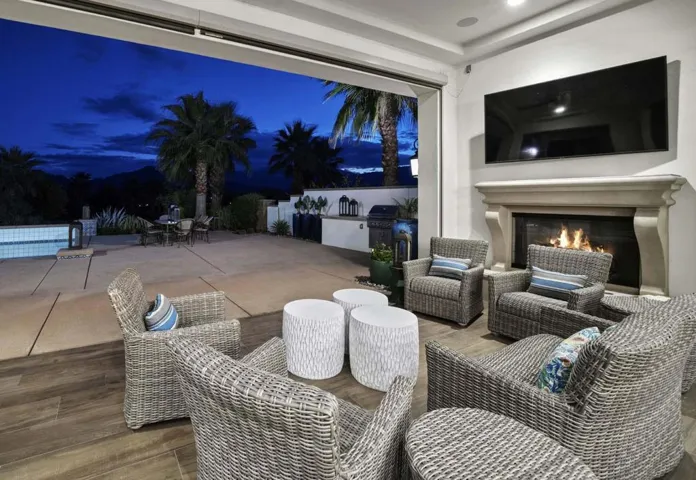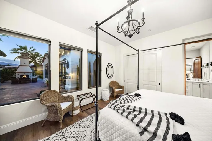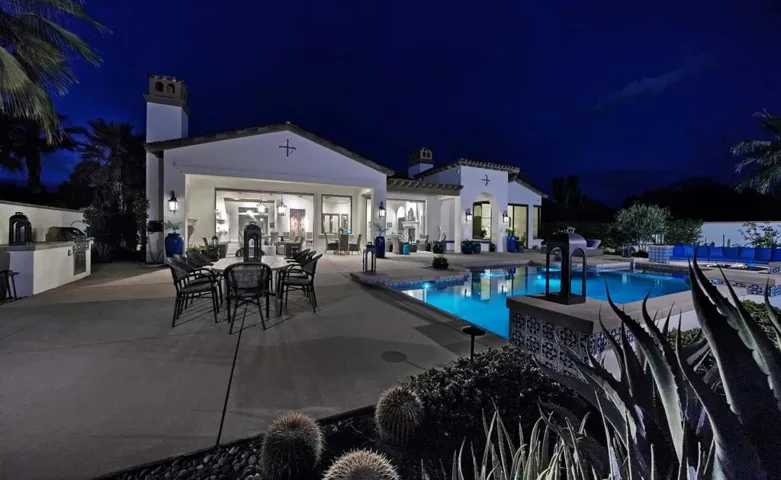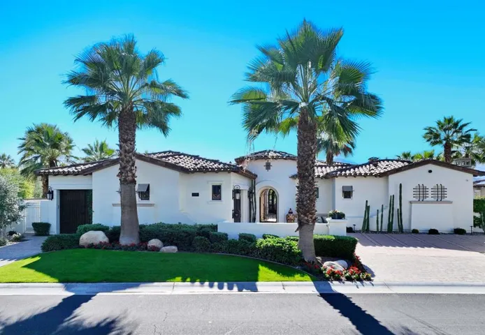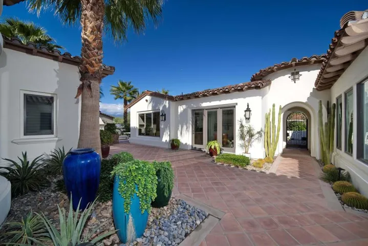 Welcome to this absolutely stunning Early California-style home, perfectly located on the 11th hole of our prestigious north course. This residence features unobstructed south-facing views, allowing you to savor breathtaking mountain vistas from various vantage points within the home and expansive outdoor leisure areas. Adding to its charm, the home boasts an owned solar system, ensuring energy efficiency and cost savings, while also contributing to a sustainable lifestyle. Vibrant pops of color throughout the interior create an inviting atmosphere, showcasing a harmonious blend of elegance and warmth. As you enter, you’ll appreciate the impressive architectural enhancements, including an expanded kitchen with dual islands that inspire culinary creativity and effortless entertaining. The open-concept layout is designed for seamless living, accentuated by pocket sliders that invite natural light and connect the indoor spaces with the stunning outdoor environment. Step into the expansive backyard, a true oasis for relaxation and entertainment. Here, you will find ample leisure areas, a sparkling pool and spa for refreshing dips, and an oversized firepit that serves as a gathering focal point. The backyard also features a heater and fireplace under the veranda, ensuring comfort for outdoor enjoyment throughout the seasons, alongside a state-of-the-art water filtration system for pure, refreshing hydration at your fingertips. Finally, immerse yourself in the ultimate audio experience with the Sonos audio system, allowing you to set the perfect ambiance throughout your home and outdoor spaces. This remarkable home offers a unique blend of sophistication, comfort, and picturesque views, making it the perfect retreat for anyone looking to embrace the Southern California lifestyle. Don’t miss this opportunity to make it your own!