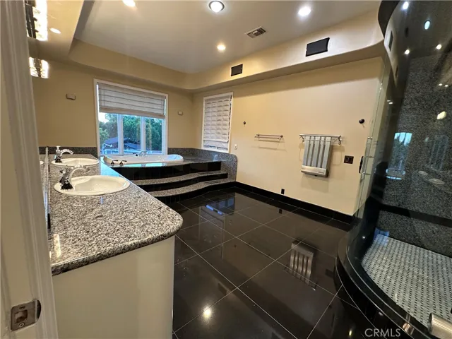 The expansive backyard is a true oasis, featuring a sparkling pool and spa, a fully appointed pool house with AC, heat, electricity, and water, plus an impressive BBQ island with gas burners, a grill, fridge, firepit and an outdoor bathroom for ultimate outdoor living and entertaining.