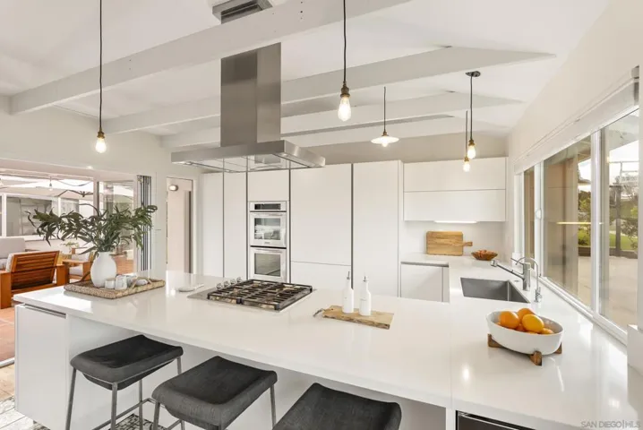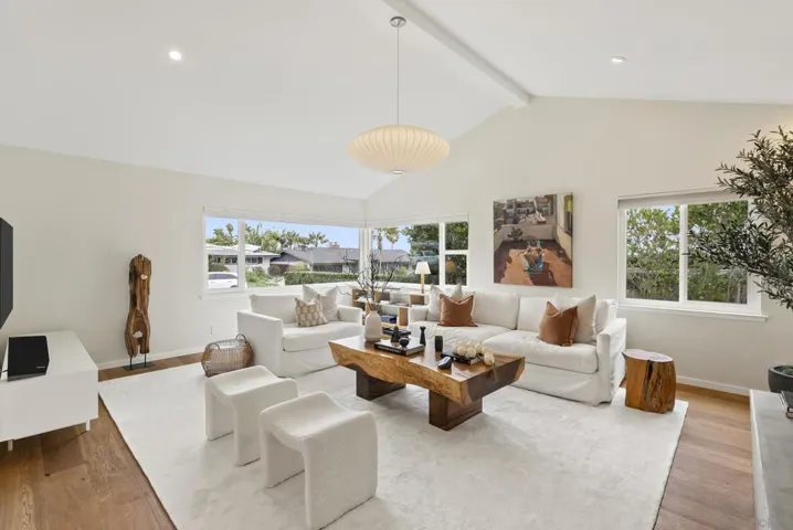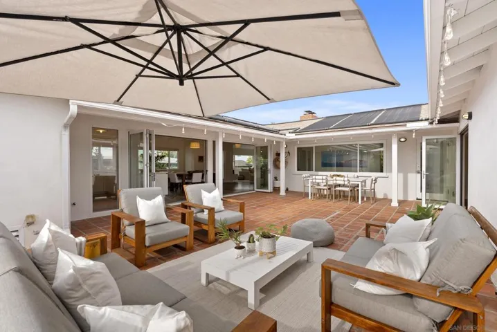 Exquisitely remodeled single-story residence in La Jolla, showcasing refined design and premium finishes throughout. This 4 bedroom, 3.5 bath home features an elegant open layout anchored by a central patio that enhances natural light and seamless indoor–outdoor flow. DuChâteau engineered wood flooring extends throughout the home and the gourmet Siematic kitchen is outfitted with Miele appliances.The expansive garden offers a resort-like atmosphere with a sparkling pool, spa and fire pit. Please watch the video! The expansive garden offers a resort-like atmosphere with a sparkling pool, spa, fire pit, and dedicated sunning area ideal for both sophisticated entertaining and everyday luxury living. A blend of modern coastal elegance and comfort!