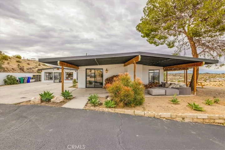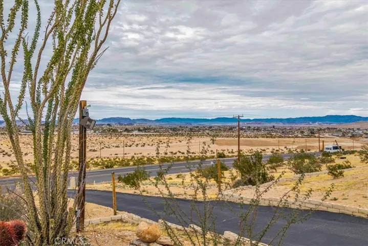 This place has an amazing story and many cool aspects. There is a main house and a back house, (two adjoining lots sold separately but could be purchased together)included with this sale. The main house has 3 bedrooms and 2 bath with brick fireplace, central heat and AC (dated) with additional Evap cooler, separate indoor laundry and mud room exit/entrance, massive windows with views for days, expansive carport and oversized covered patio, mature trees and landscape throughout the property. There is new asphalt leading up to the property and several hundred square feet of concrete outside for more curb appeal and less dirt and sand indoors. Solar panels have been installed and are saving the homeowner money each month and is on a lease, that will need to be transferred or negotiated in the purchase and paid off at closing. The detached 1 bedroom unit has been fully remodeled with a full kitchen, heating, mini split, dining and living space with a separate bedroom that can fit a King bed with a 3/4 bathroom. It’s a wonderful add to an already existing 3/2 house next to it. Very private and tremendous views from almost any window or door. It sits atop a hill that has many unobstructed views of the mountains, valleys, homes, sunsets and sunrises! Truly one of the best properties at this price in 29 Palms! If that was not enough, two additional parcels one on each side of the property can also be purchased. You can build your dream homes or add ADU’s and garages depending on your vision and approval through the City. There is Soooo much potential!!!!! (other two lots – APN: 0617-021-11 located to the right of the property from street view and its 19,600 sq feet. 0617-031-14 on the left side of the driveway pulling in from the HWY and its 23000 sq feet. More info on the parcels in the supplements) Professional photos by Dec 15th.